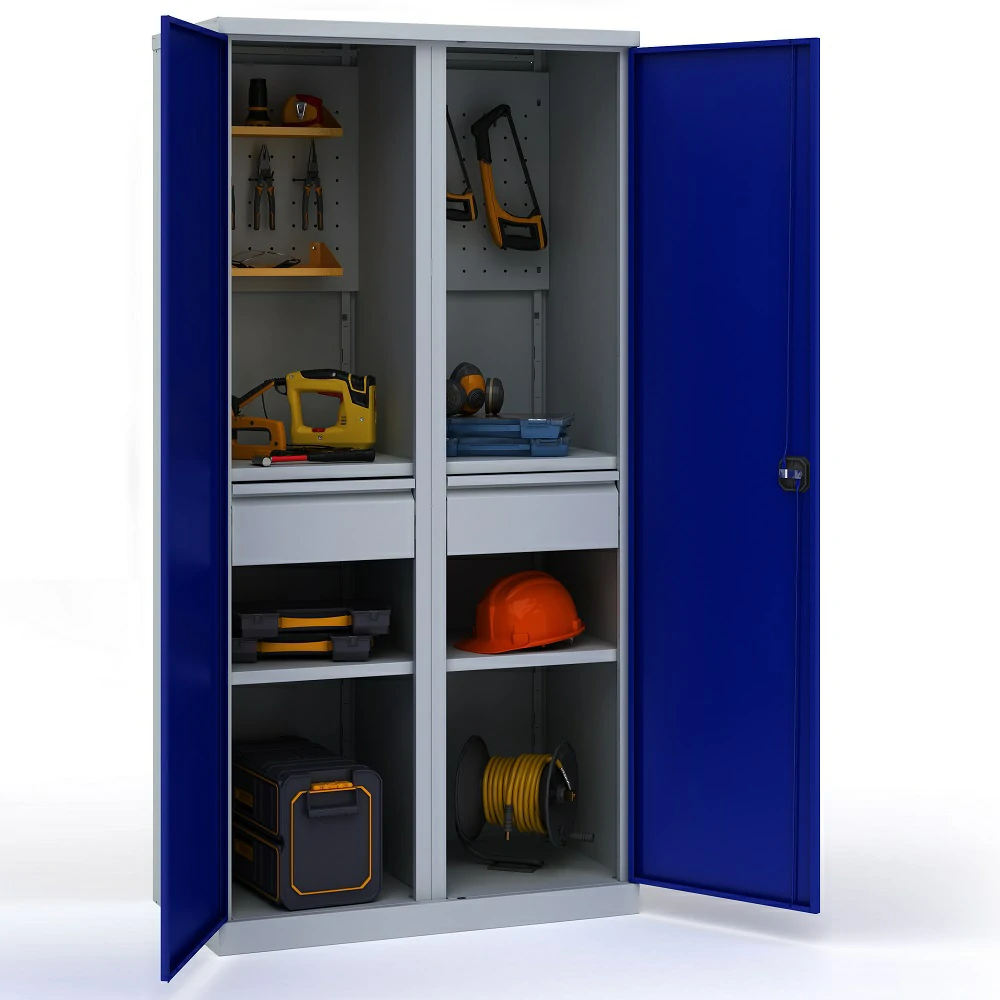 Шкаф инструментальный ИП-2/1 предназначен для хранения инструментов, разнообразных личных приспособлений и оснастки в мастерских, цехах и различных производственных помещениях.