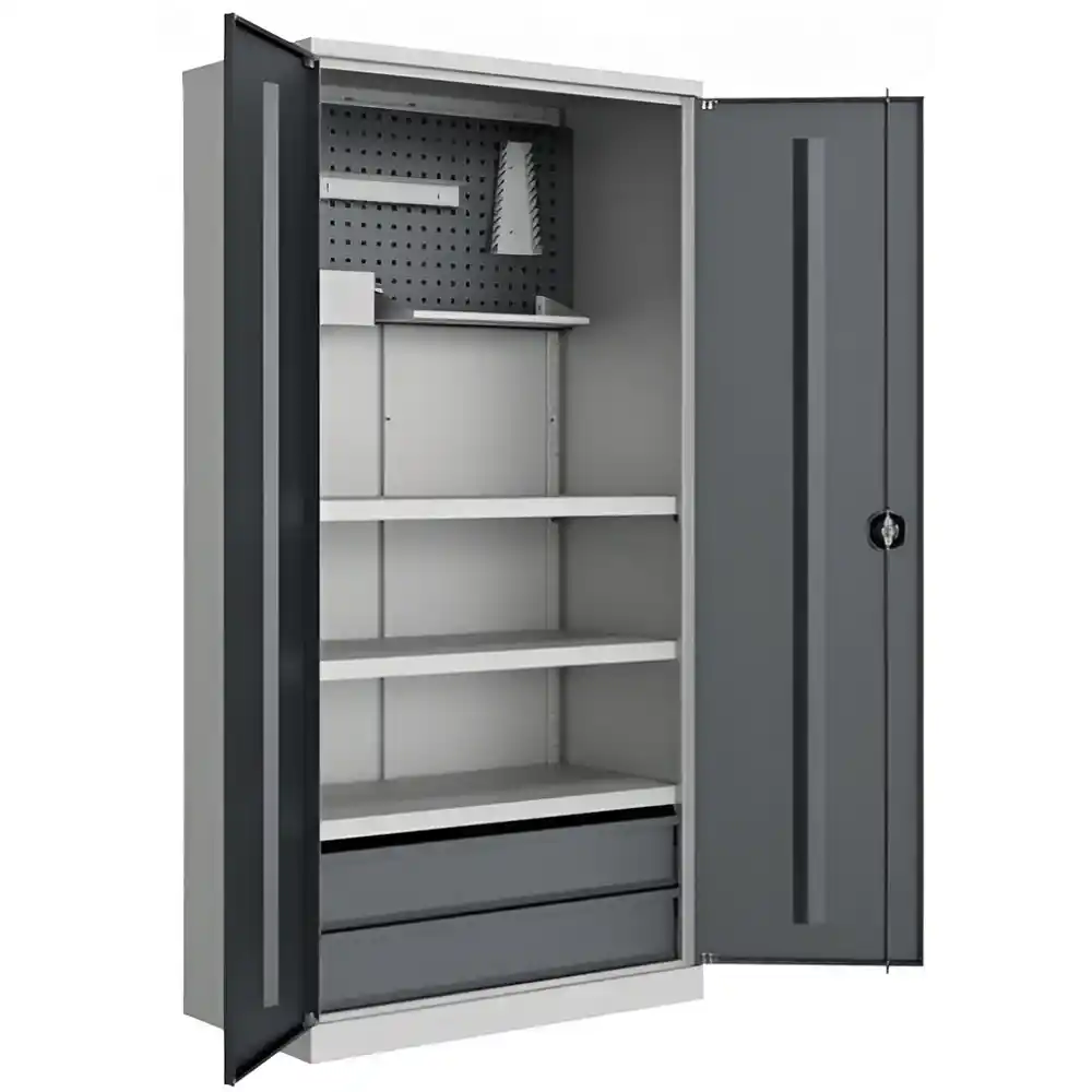 Шкаф инструментальный TS-052-04 для производственных предприятий, ремонтных мастерских, гаражей и т.д. Используется для хранения инструмента и оснастки. Внутреннее наполнение шкафа комплектуется по желанию Покупателя.
