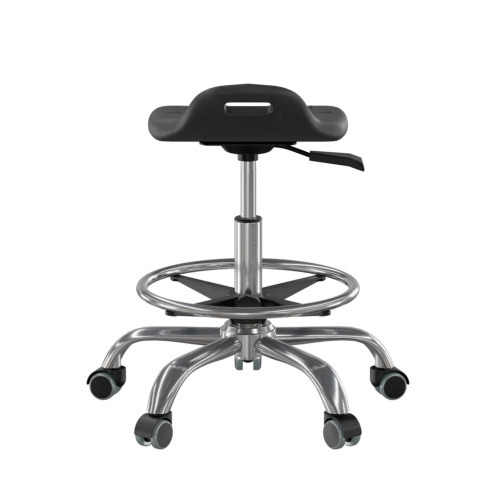 - Регулируемые по высоте сиденье и опорное кольцо для ног обеспечивают общий комфорт рабочего пространства.