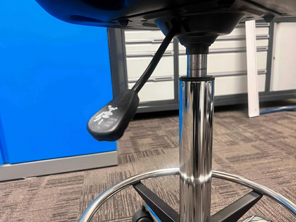 - Регулируемые по высоте спинка, сиденье и опорное кольцо для ног обеспечивают общий комфорт рабочего пространства.