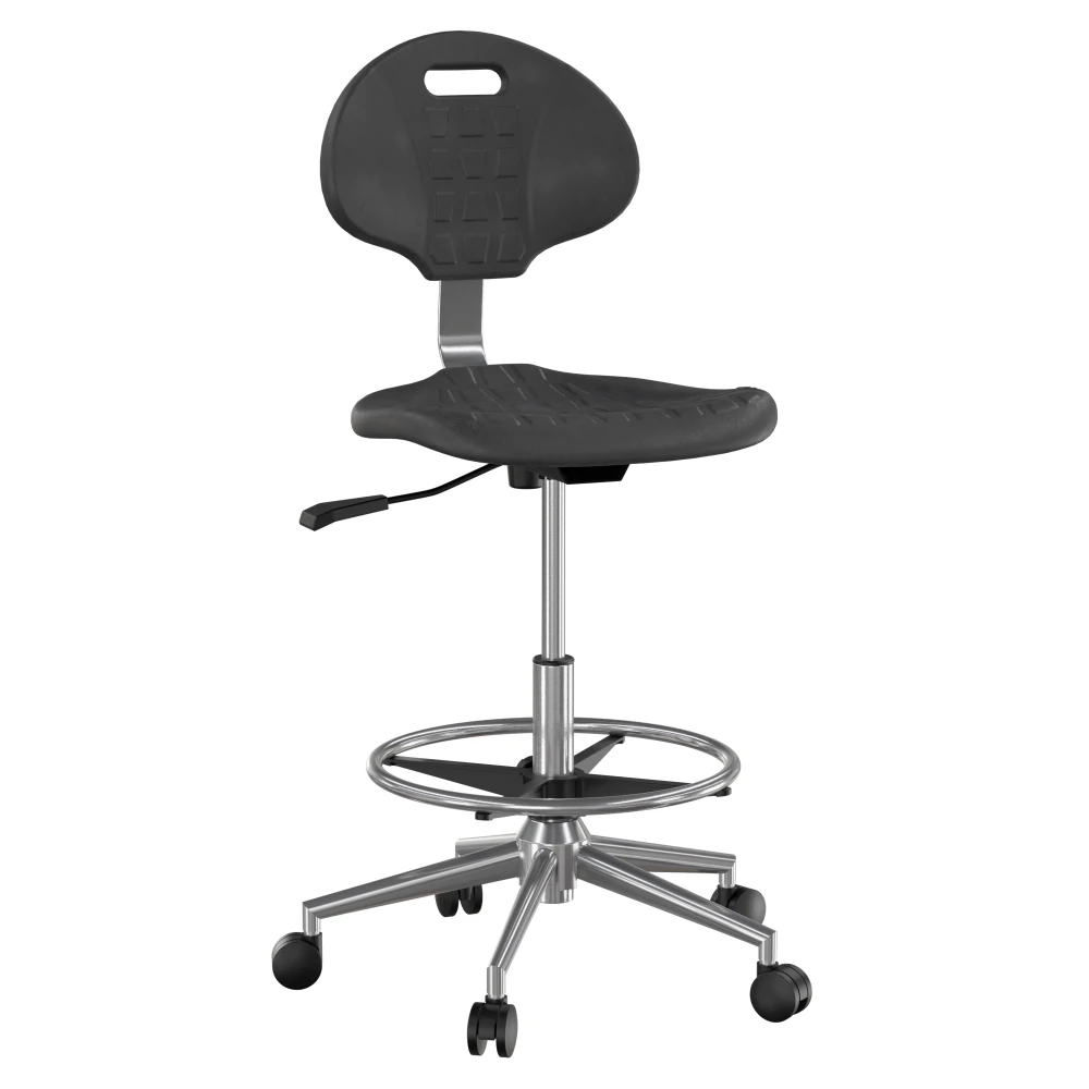 - Полиуретановые сиденье и спинка устойчивы к воздействию воды, кислот, щелочей, к воздействию искр и к кратковременному воздействию высокой температуры (негорючий), благодаря этим свойствам обеспечивается безопасность рабочего пространства и лёгкость в уходе.