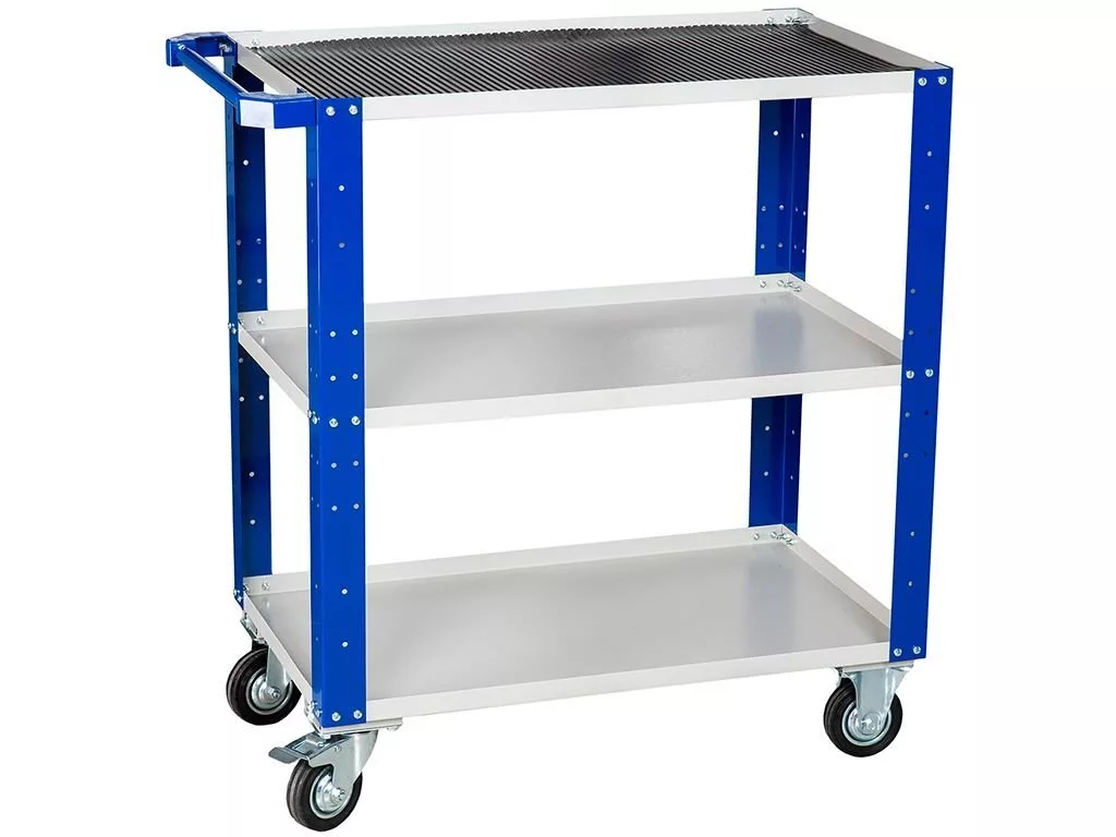 Инструментальная тележка WDS-0 от компании Абсолют используется для хранения инструментов и рабочего инвентаря. Благодаря четырем резиновым колесам (диаметром 100 мм), при максимально допустимой нагрузке, легко передвигается по производственной площадке. Тележку можно использовать как приставной элемент рабочего стола или верстака, для этого на одном из колес необходимо активировать стояночный тормоз.