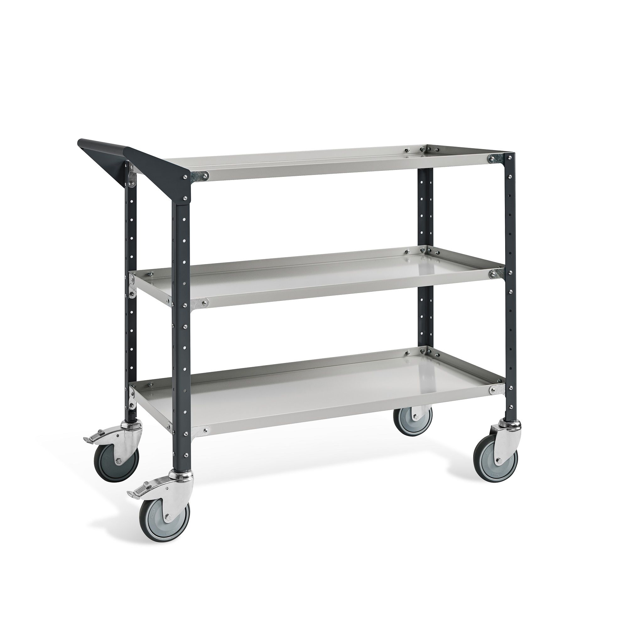 - Комплектация- три полки с отбортовкой, четыре поворотных колеса (два с тормозом)