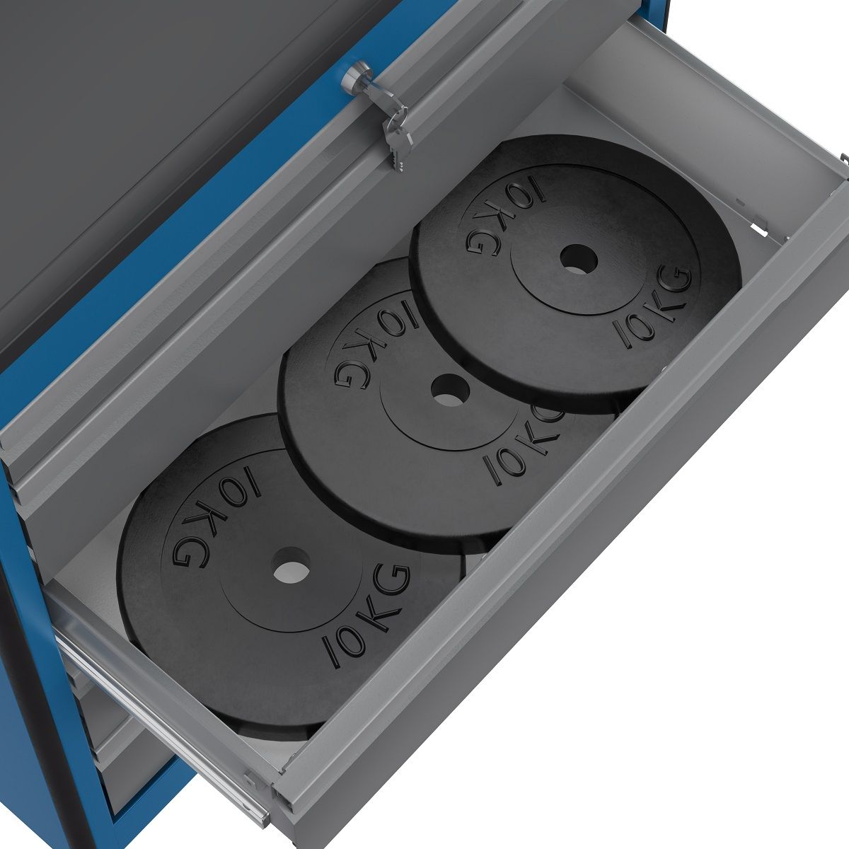 - Тележка снабжена центральным замком с поворотом ригеля 180 градусов, который закрывает одновременно все ящики. Замок неподвижно и прочно закреплен на корпусе тележки. В комплекте имеется два ключа. Тяга замка подпружинена.