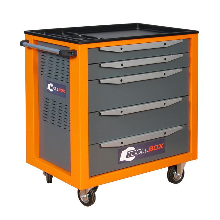 - Корпус тележки инструментальной TBS-5 в исполнениях с выдвижными ящиками изготовлен неразборным, сварным соединением из 1,0 мм стали.