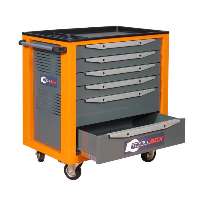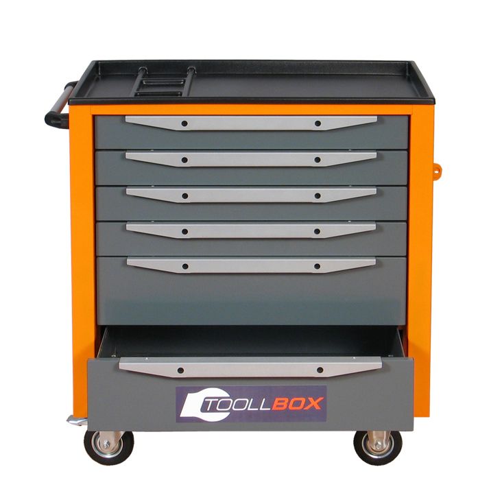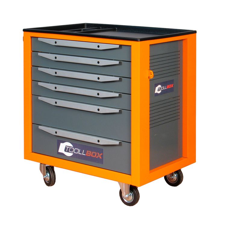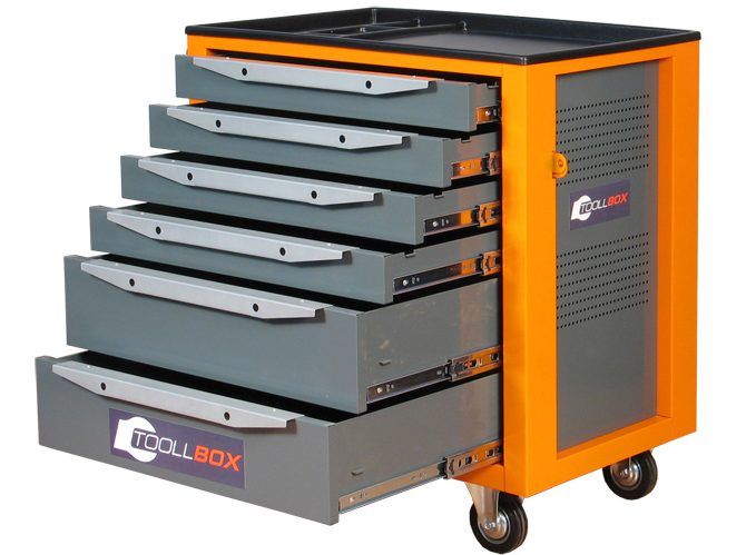 - Корпус тележки инструментальной TBS-6 в исполнениях с выдвижными ящиками изготовлен неразборным, сварным соединением из 1,0 мм стали.
