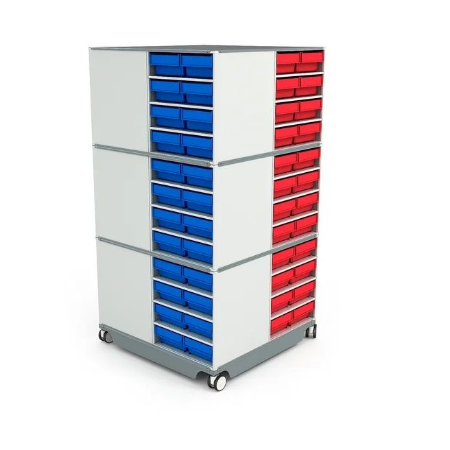 - Поворотная кассетница состоит из 3 ярусов, содержащих 4 кассеты, и имеет 4 поворотных колеса со стопором.
