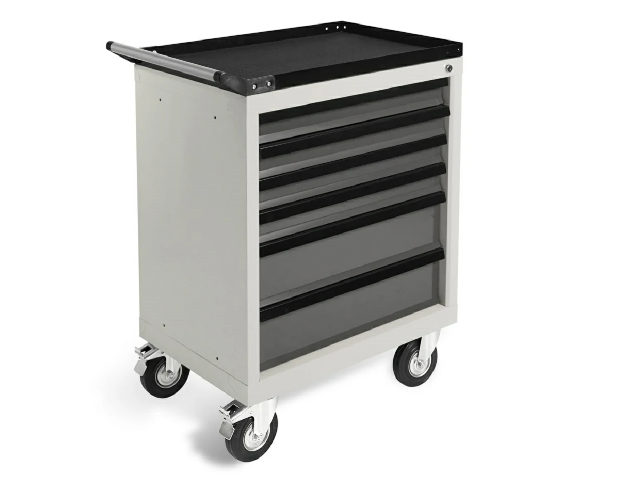 - Тележка укомплектована лотком с противоскользящим ковриком и эргономичной ручкой,
