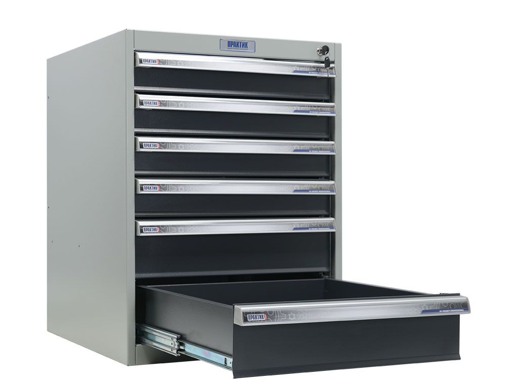 - Комплектуется 6-ю выдвижными ящиками. (4-мя малыми, 2-мя средними).