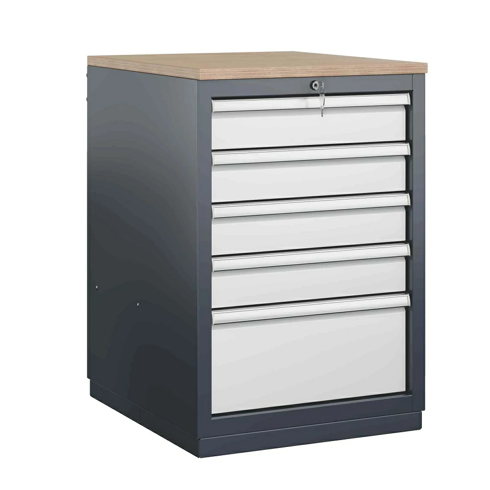 - Размеры выдвижных ящиков: 4 ящика высотой 112мм (ВхШхГ: 80х460х500 мм), 1 ящик высотой 228 мм (ВхШхГ:190х460х500 мм)