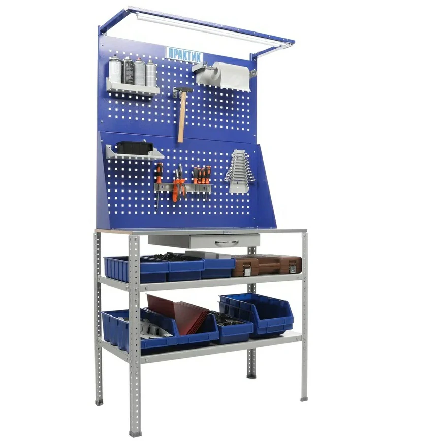 - Материал: Большинство современных слесарных верстаков изготавливаются из прочной стали, которая обеспечивает высокую устойчивость к механическим повреждениям и коррозии. Некоторые модели могут иметь деревянные элементы, но они обычно применяются только для столешниц и не влияют на общую прочность конструкции.