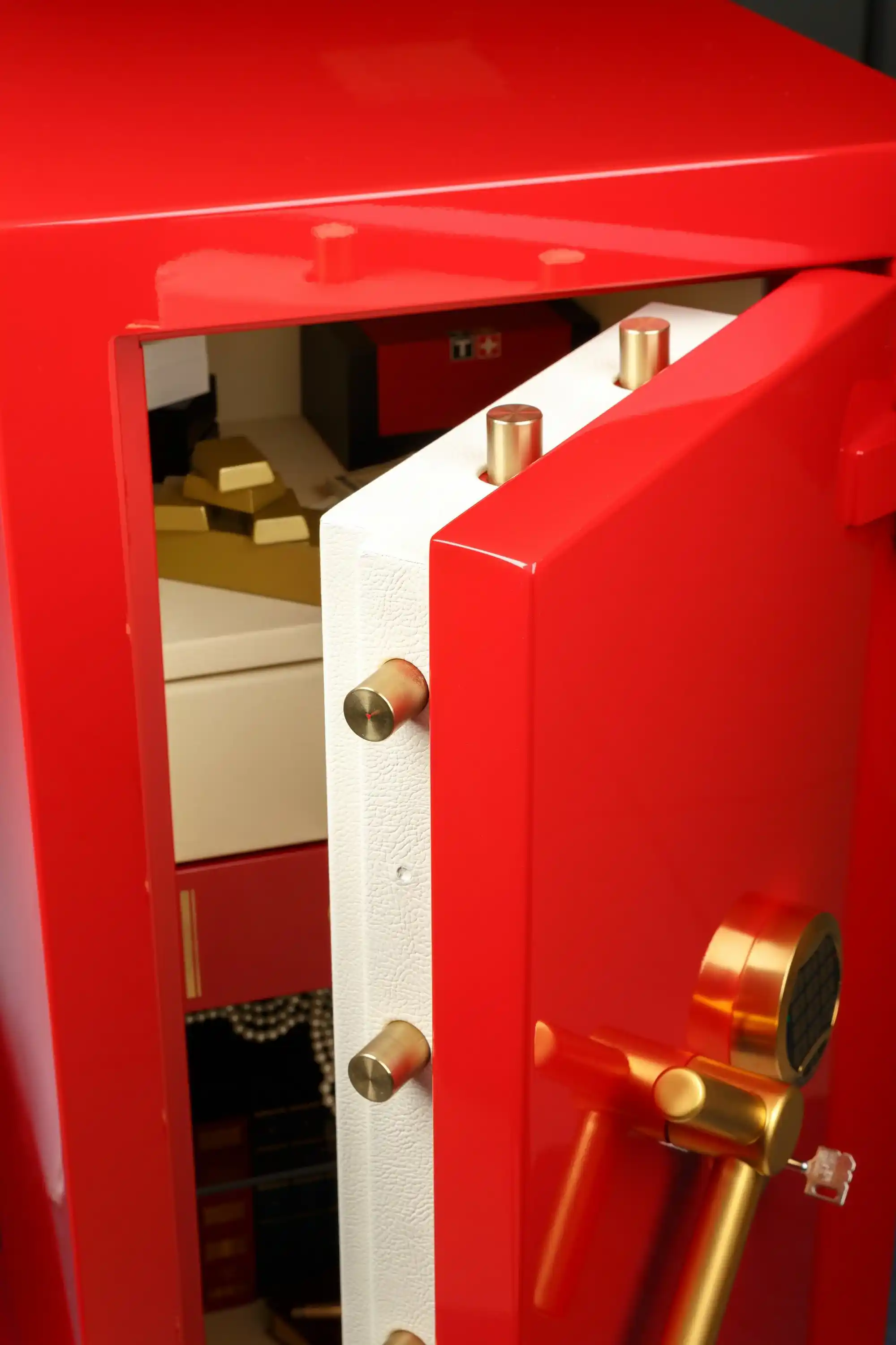 - комплектуется двумя замками: ключевым KABA MAUER, производства Германии, и электронным кодовым – PS-600 c эксклюзивным покрытием «GOLD»,