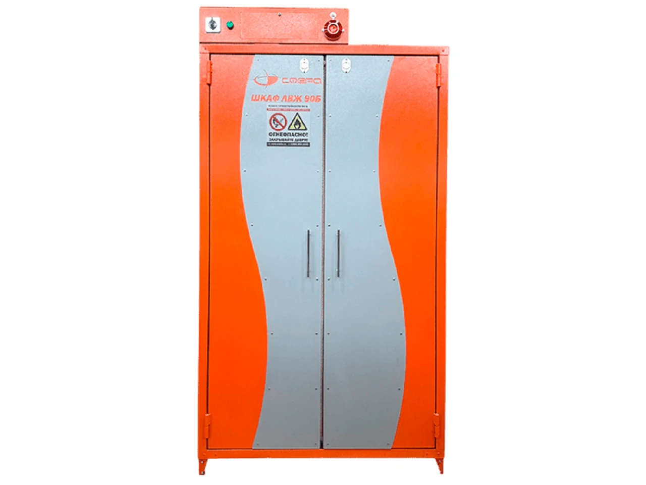 Шкаф для хранения и зарядки литий-ионных аккумуляторов c огнестойкостью 90Б обеспечивает безопасное хранение и циклическую зарядку литий-ионных аккумуляторных батарей (в отдельном пожаробезопасном шкафу).