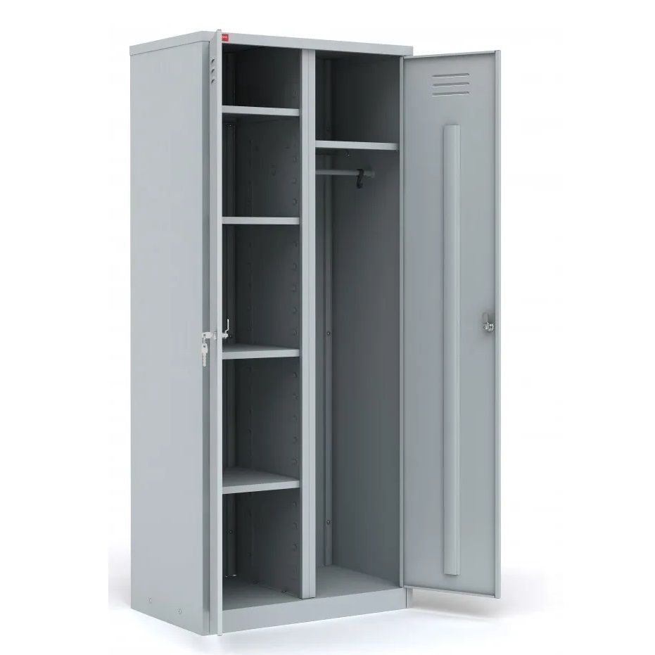 Шкаф металлический для хранения одежды и инвентаря ШРМ 22 800 У - двухсекционный, предназначен для хранения сменной одежды , документов, хоз.товаров и инвентаря.