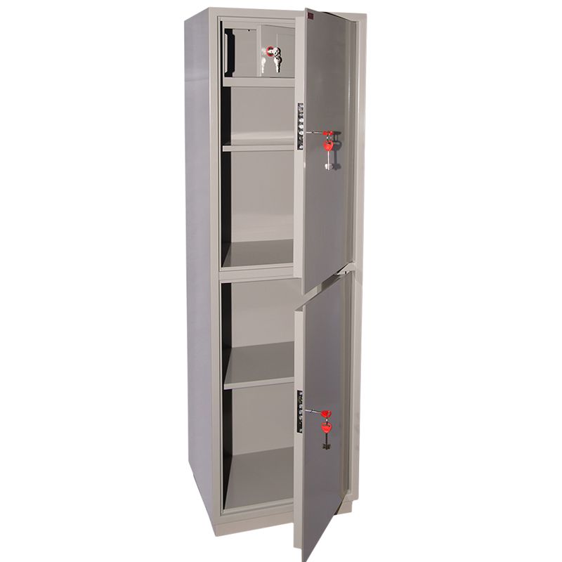 - Горизонтальная перегородка делит шкаф на 2 независимых отделения, запираемых собственной дверью.