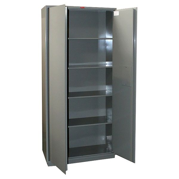 - Сварная конструкция корпуса изготовлена из качественной листовой стали толщиной 1.5 мм, двери шкафа выполнены из металла толщиной 2.0 мм (металл полки – 0.8 мм).
