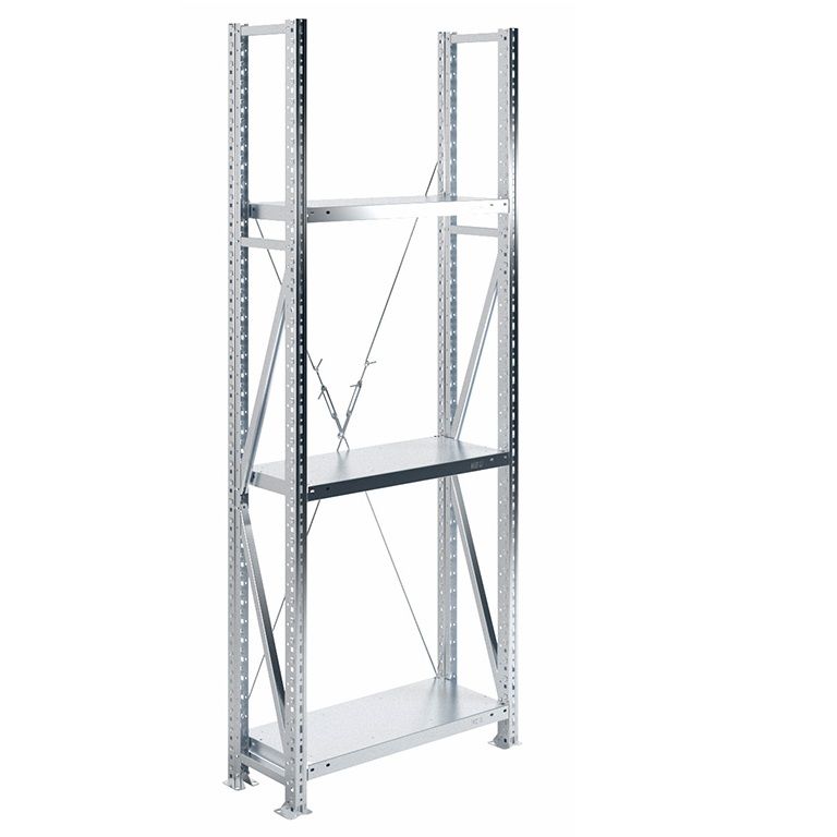 предназначен для использования как на складах и производствах, так и в небольших помещениях – торговых точках и кладовых.Размеры (В*Ш*Г) 2000x700x300 мм 3 полки. Материал исполнения: оцинкованная сталь.