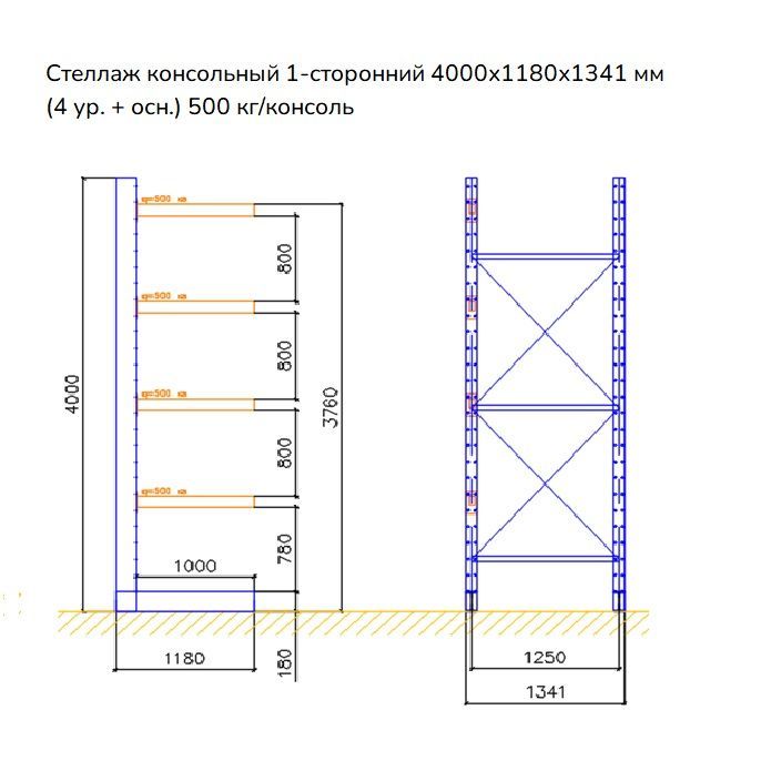 Стойка 1-сторонняя 4000х1180х180 мм (цвет RAL 5005)-2 шт.