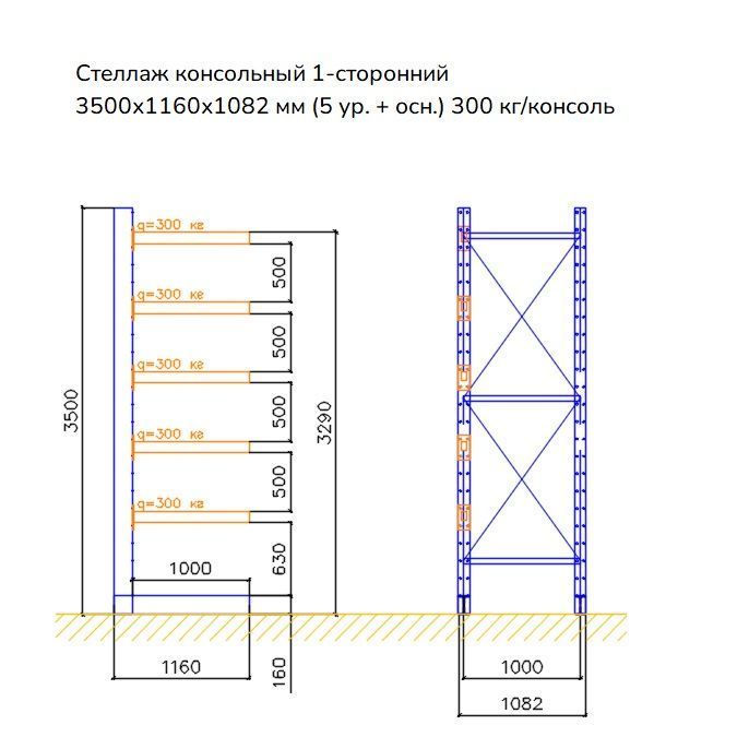 Купить консольный стеллаж СК 160 в Москве, Самаре, Екатеринбурге, Перми, Челябинске, Тюмени, Новосибирске
