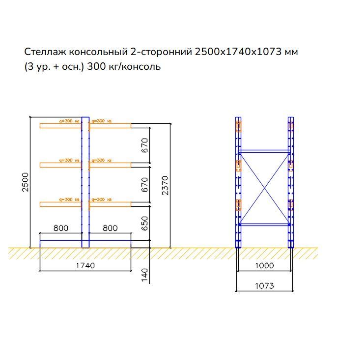 Стойка 2-сторонняя 2500х1740х140 мм (цвет RAL 5005)-2 шт.