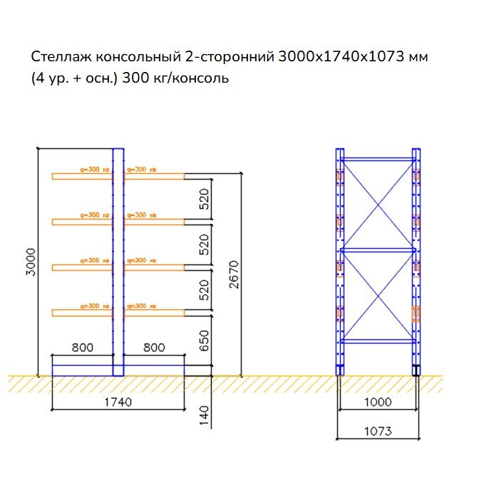 Купить консольный стеллаж СК 140, высотой 3000 мм в Москве, Самаре, Екатеринбурге, Перми, Челябинске, Тюмени, Новосибирске
