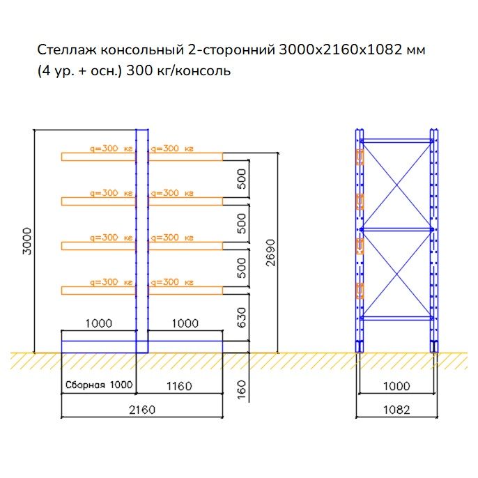 Купить консольный стеллаж СК 160, высотой 3000 мм в Москве, Самаре, Екатеринбурге, Перми, Челябинске, Тюмени, Новосибирске