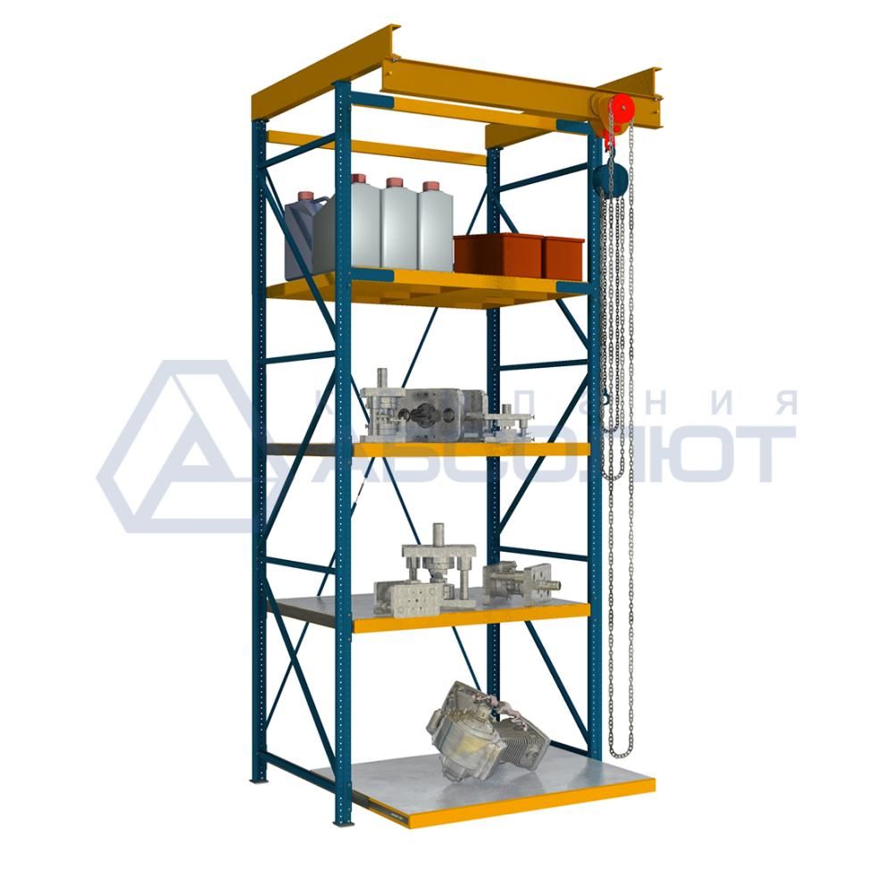 Стеллаж с выкатными полками полного выдвижения Slide-200, 600*1100, с талью предназначен для хранения, обслуживания, ремонта легких грузов: небольших штампов, форм для литья, деталей, узлов.