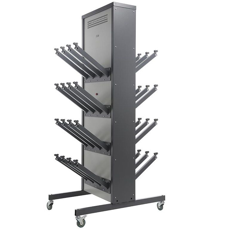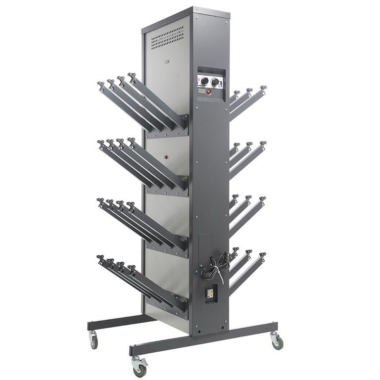 Принцип работы стойки заключается в нагнетании теплого воздуха внутрь обуви через патрубки. Влажная обувь навешивается на расположенные на корпусе стойки кронштейны, через которые подается теплый воздух. Таким образом, конвекция воздуха происходит непосредственно во внутренней части ботинка, что существенно ускоряет процесс сушки. Каждый патрубок для обуви снабжен инерционным клапаном, перекрывает подачу воздуха, если ботинок не одет.