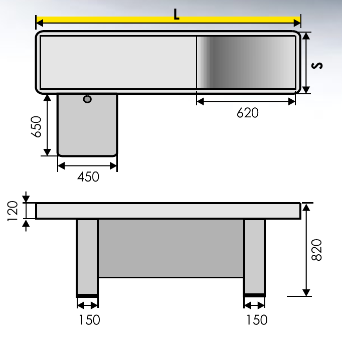 Ширина рабочей поверхности - 400 мм, материал - шлифованная нержавеющая сталь.