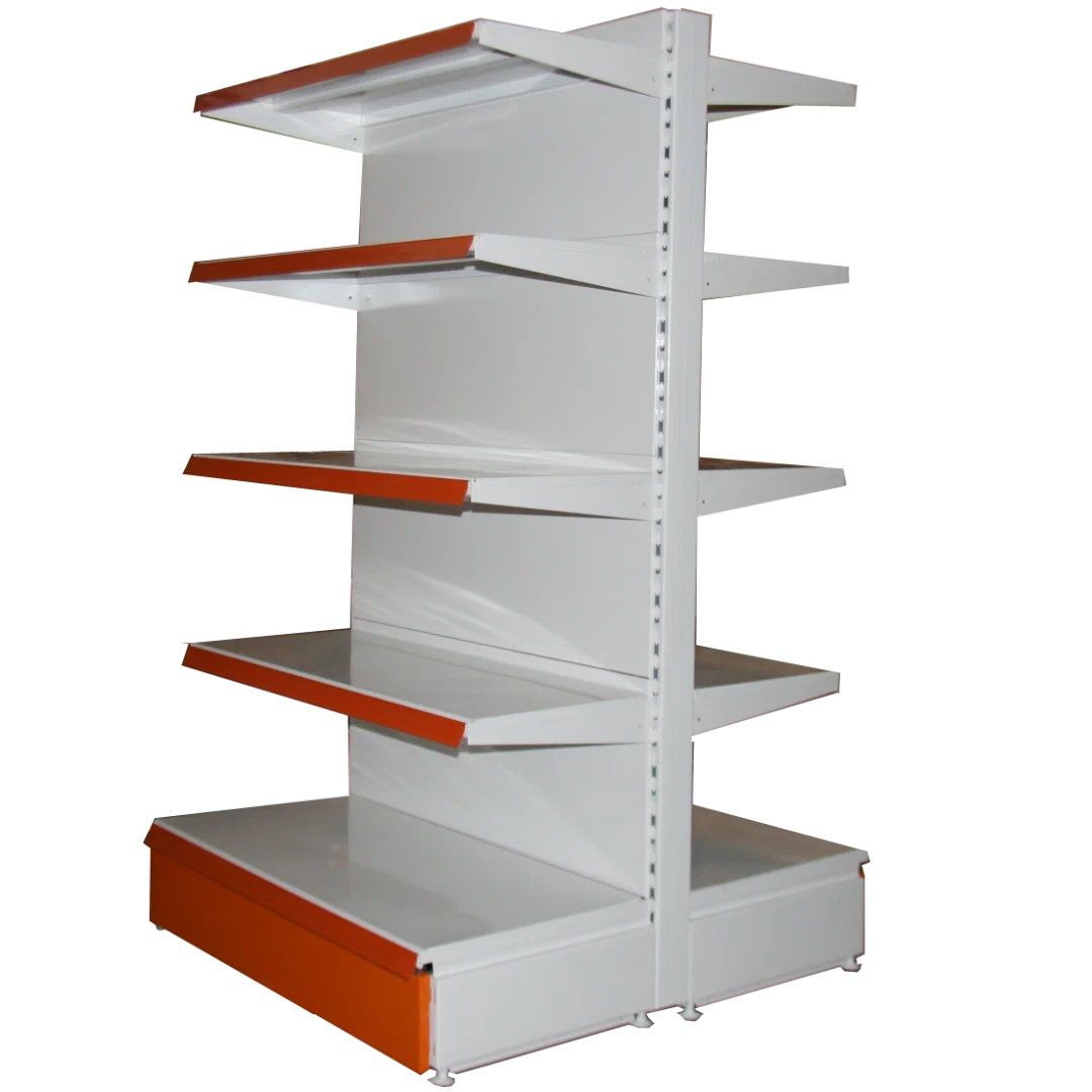 В отличие от своих пристенных собратьев, торговые островные стеллажи торговые загружаются с двух сторон, что позволяет предложить вниманию посетителей большее количество товаров. Могут устанавливаться как отдельно стоящими, так и в одну сплошную линию. При необходимости дополняются ценникодержателями, ограждениями полок и другими аксессуарами.