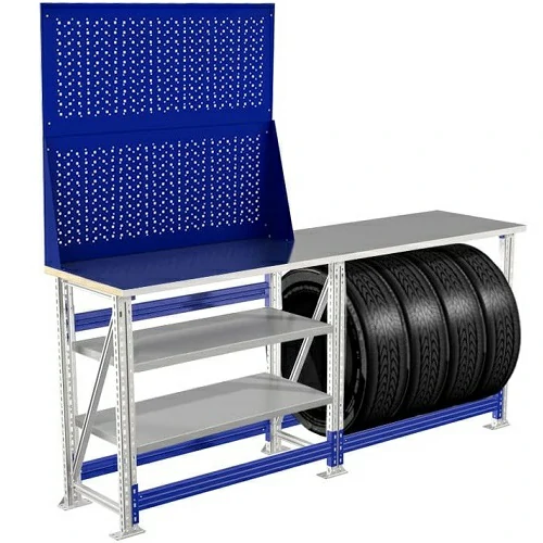 Каждый слесарный верстак для гаража может комплектоваться перфорированными экранами и навесными элементами: крючки, держатели для инструмента. полочки (опция).