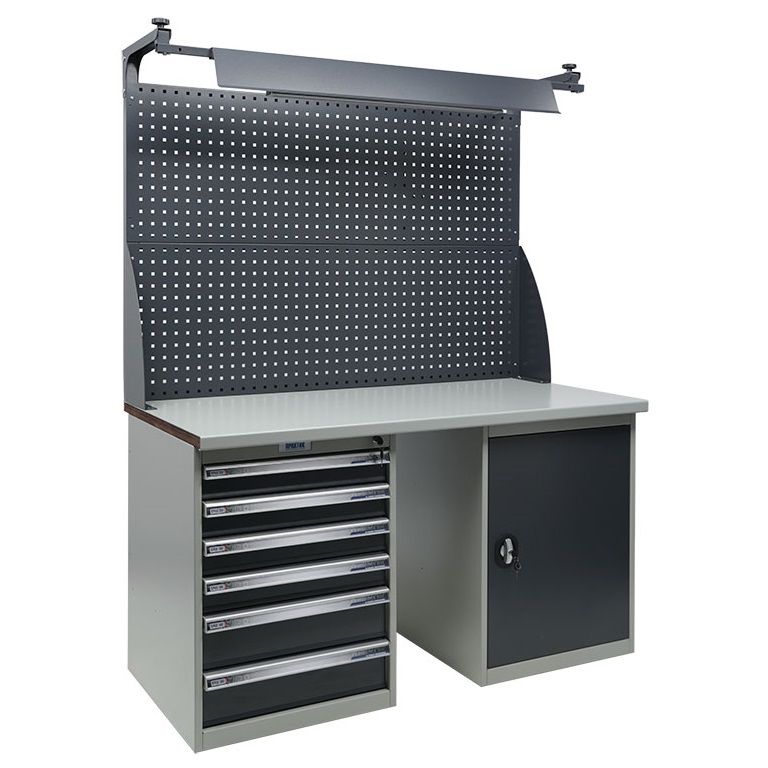 Верстак Expert T WTH150 комплект 6 (ExpTWTH150.T6/T1.021) металлический слесарный (столярный) повышенной устойчивости к нагрузкам. Верстак данной серии изготовлен из высококачественной стали и предназначен для удобной организации рабочего места в мастерских, автосервисах, на производстве или в учебных заведениях. Одной из важных особенностей сверхтяжелых верстаков серии T являются их надежность и модульный принцип комбинирования в различных комплектациях.