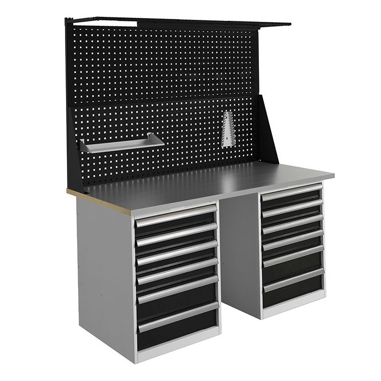 - Дополнительно верстак можно укомплектовать светодиодным освещением, аксессуарами для инструментов.
