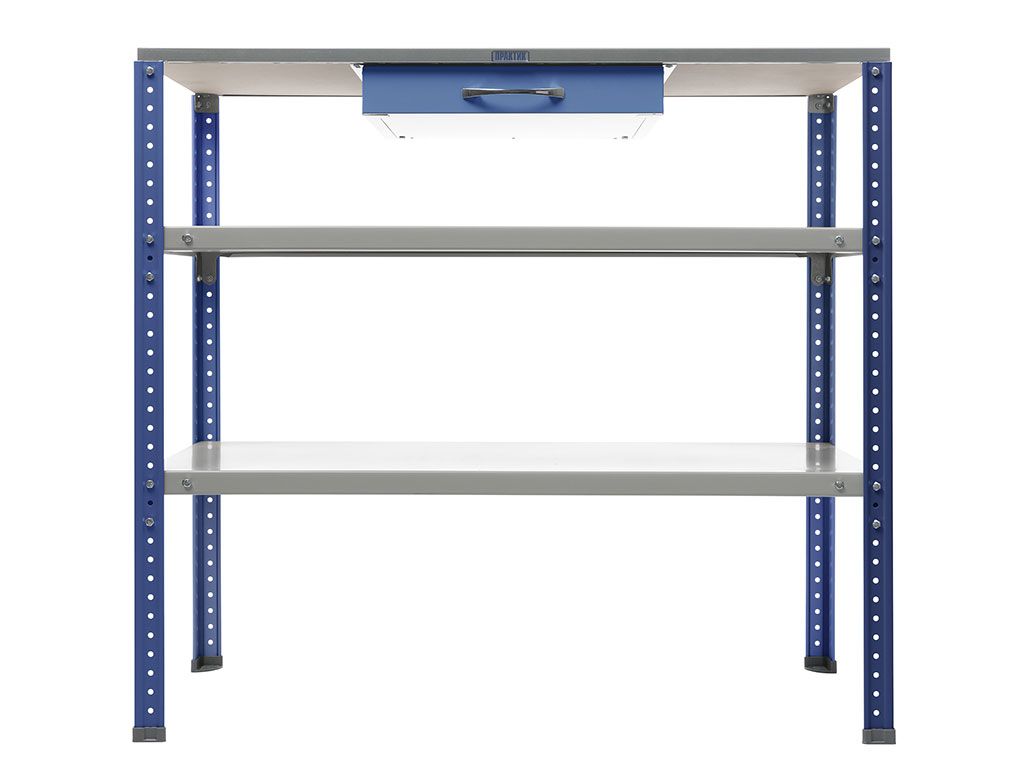 Дополнительно верстак можно укомплектовать 1 или 2 перфорированными экранами, светодиодным освещением, а также ящиками и полками (если нет в комплектации). Для экрана можно заказать навесные аксессуары.