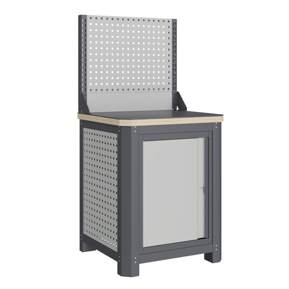 - Экран (перфорированная панель) верстака выполнен с квадратной перфорацией 12х12 мм с шагом 38 мм для установки крючков, держателей и других аксессуаров. Экран крепятся к столешнице с помощью специальных кронштейнов. Максимальная масса груза, равномерно распределенного по поверхности экрана, составляет 71 кг.