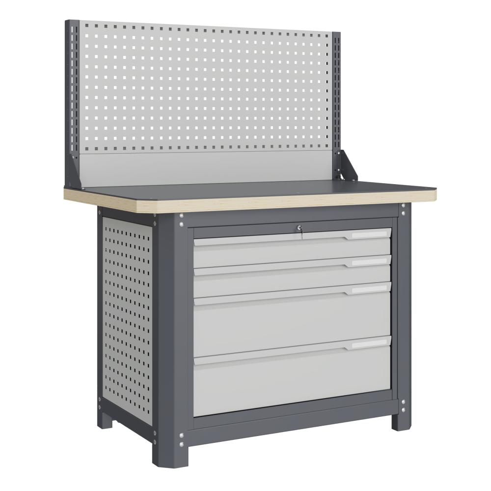 - Модуль верстака выполнен сварными. Ящики в модулях устанавливаются на шариковых телескопических направляющих полного выдвижения.