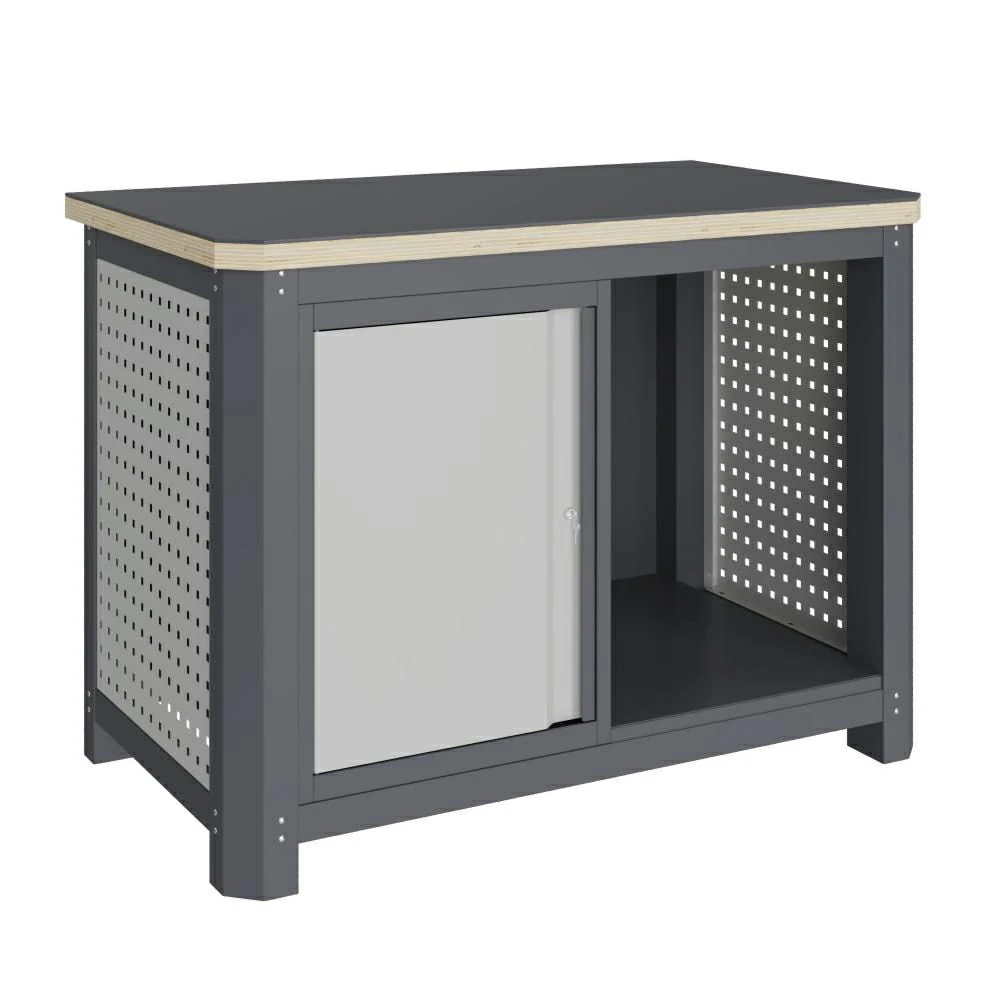 - Модуль верстака выполнен сварными. Ящики в модулях устанавливаются на шариковых телескопических направляющих полного выдвижения.