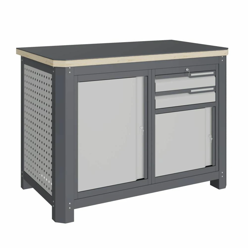 - Модуль верстака выполнен сварными. Ящики в модулях устанавливаются на шариковых телескопических направляющих полного выдвижения.