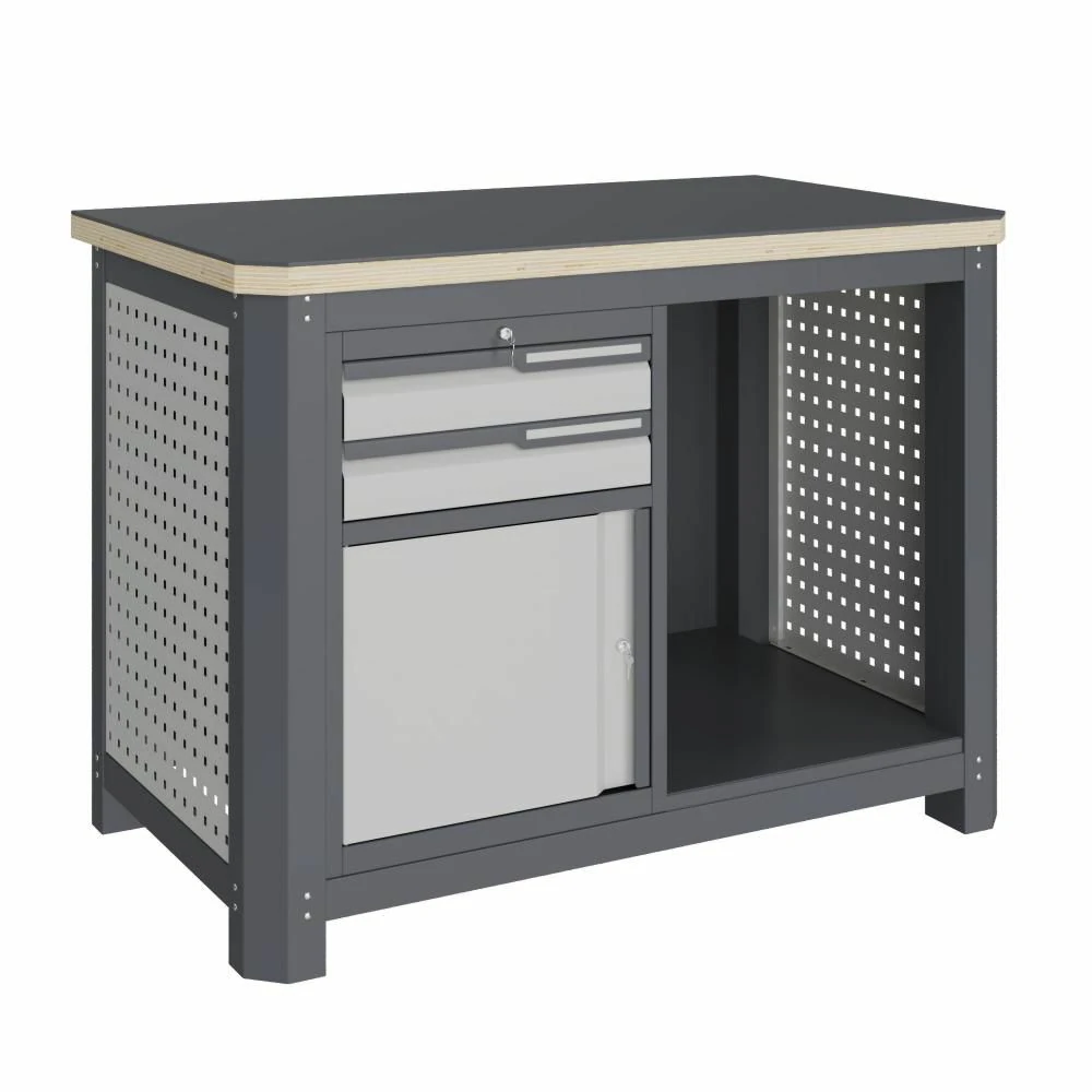 - Квадратная перфорация на элементах верстака предназначена для установки крючков, держателей и других аксессуаров, имеет размеры: квадрат 12х12 мм, с шагом 38 мм.
