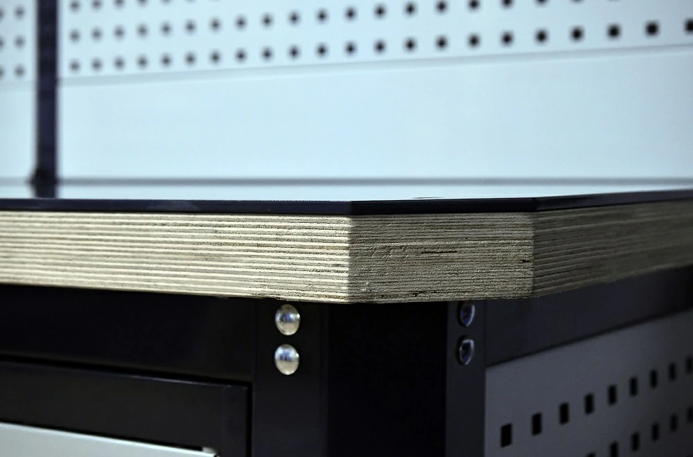 - Модуль верстака выполнен сварными. Ящики в модулях устанавливаются на шариковых телескопических направляющих полного выдвижения.
