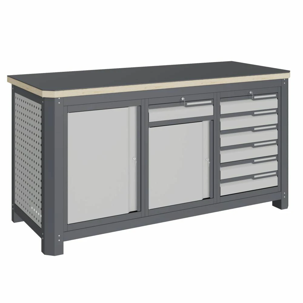 - Модуль верстака выполнен сварными. Ящики в модулях устанавливаются на шариковых телескопических направляющих полного выдвижения.