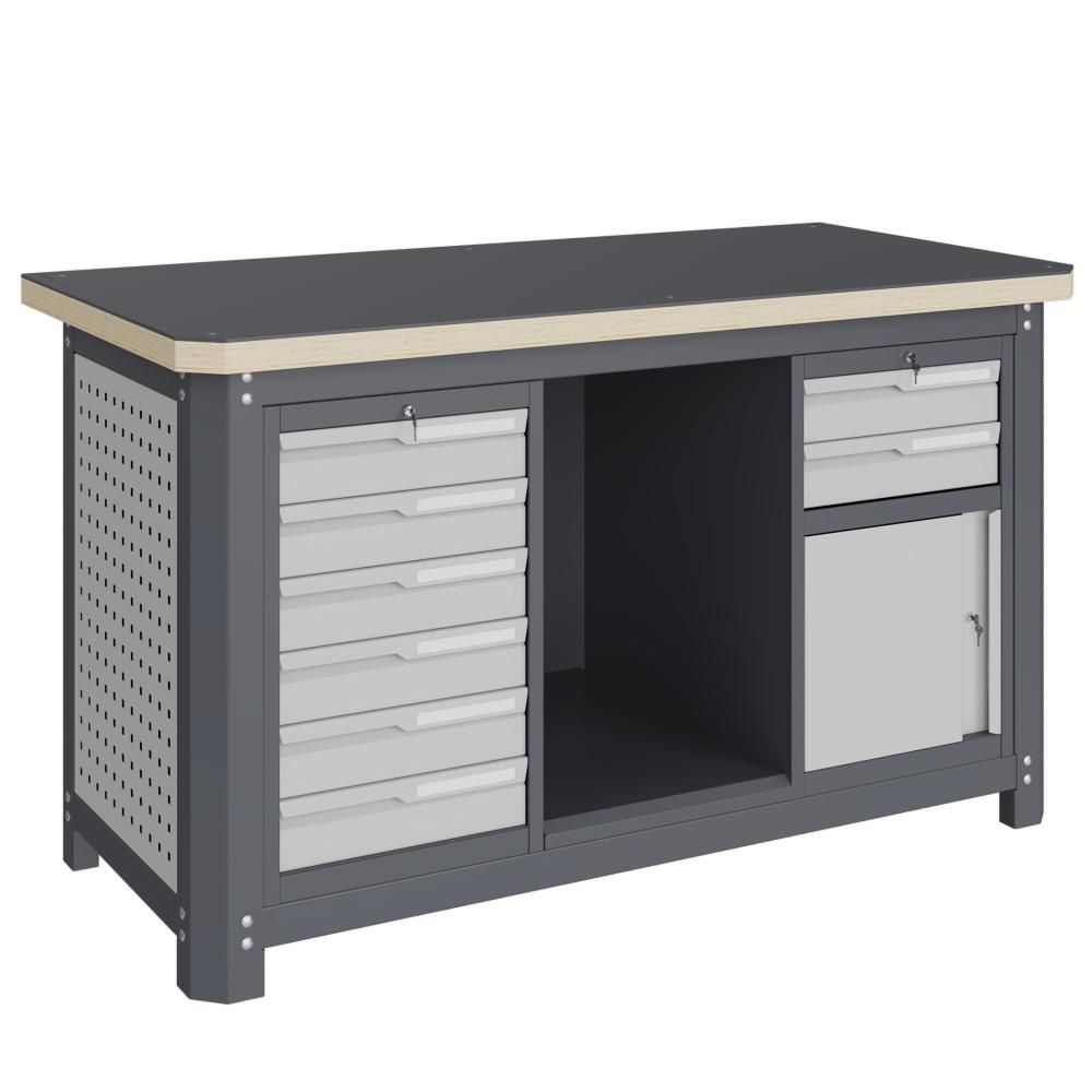 - Модуль верстака выполнен сварными. Ящики в модулях устанавливаются на шариковых телескопических направляющих полного выдвижения.