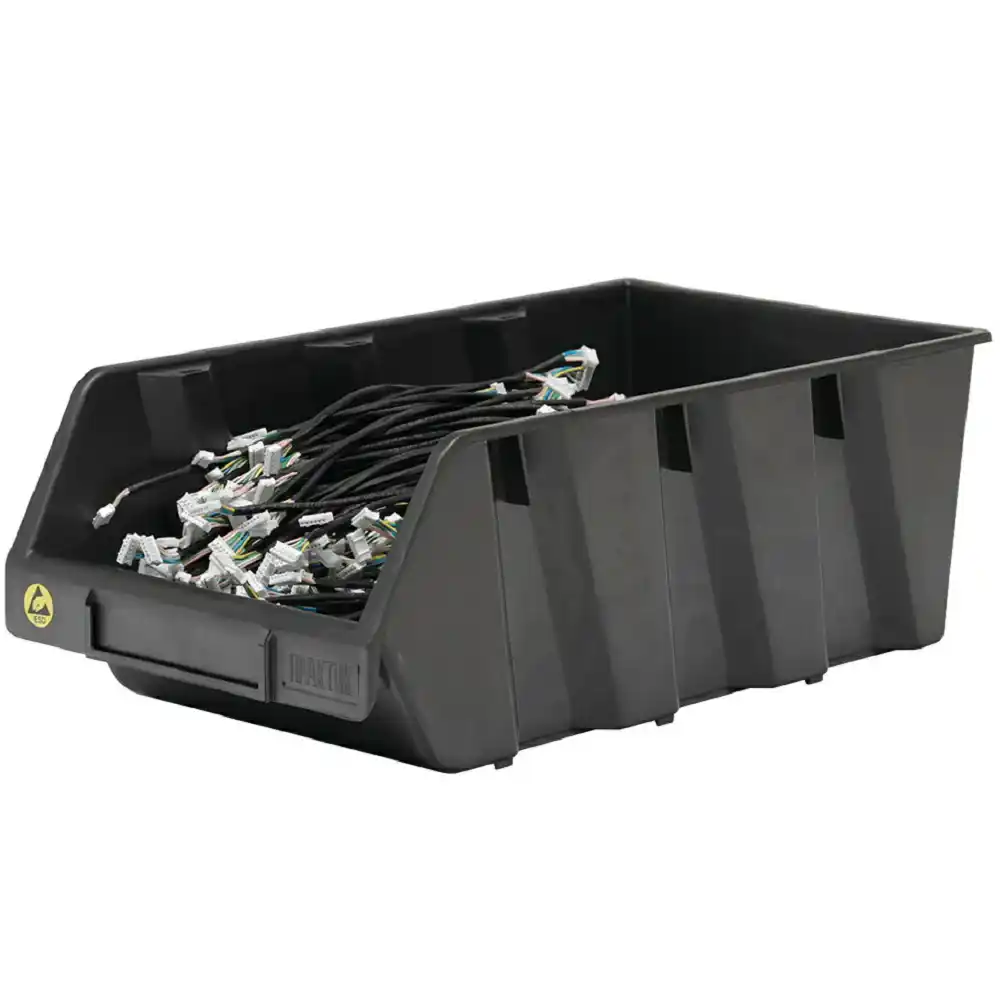 Ящик пластиковый Практик ESD 400x230x150 мм используется для хранения метизов, крепежа, запчастей и прочих небольших грузов на предприятиях, складах, мастерских, гаражах. Позволяют организовать порядок на рабочих местах, используются для наполнения верстаков, инструментальных шкафов, тумб, тележек, стеллажей, инструментальных стендов, что повышает производительность труда.