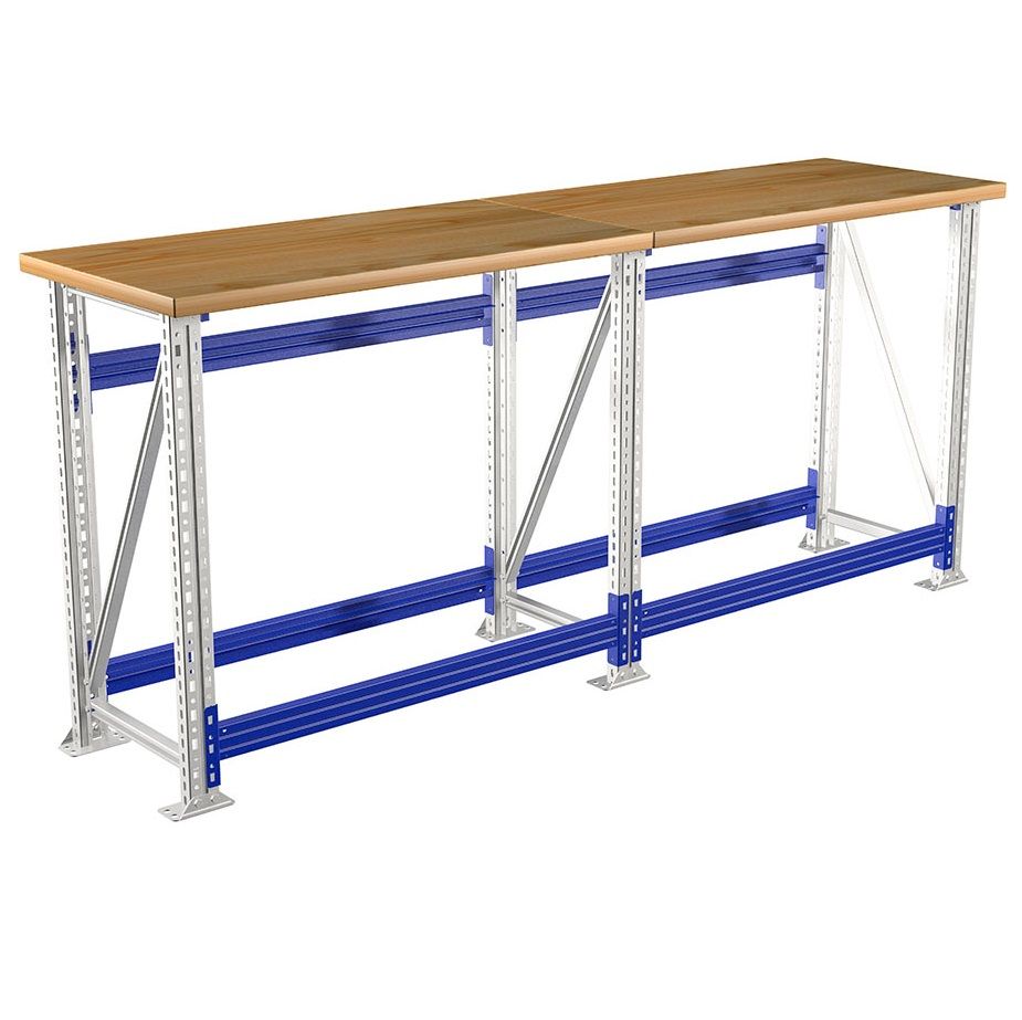 - За счёт двусторонних стоек опор верстаки можно устанавливать в линии и секции через общие опоры,