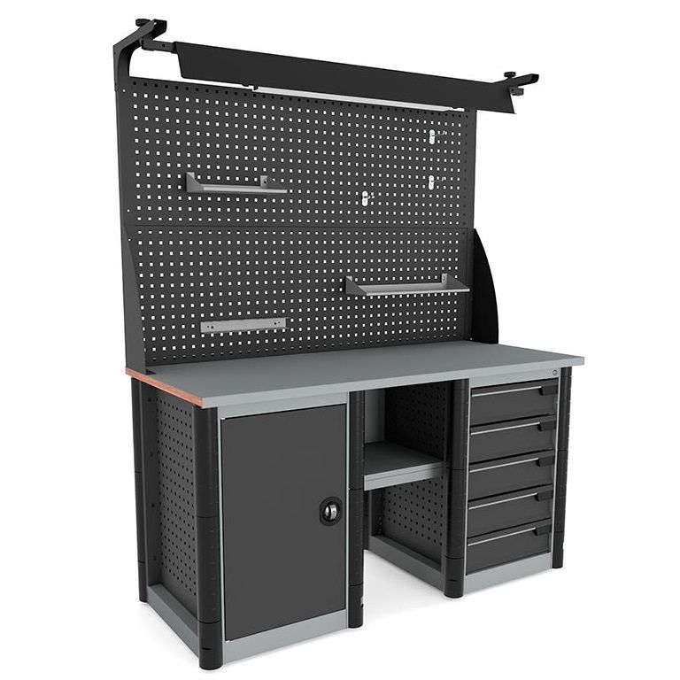 - Боковые перфорированные стенки тумбы и опоры позволяют размещать на них различные стандартные аксессуары