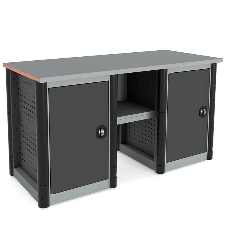 - Боковые прорезиненные бампера на тумбе и опоре защищают торцы верстака от непреднамеренного повреждения