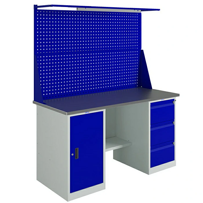- Столешница верстака изготовлена из МДФ толщиной 24 мм, покрытой оцинкованным листовым металлом толщиной 1,2 мм.