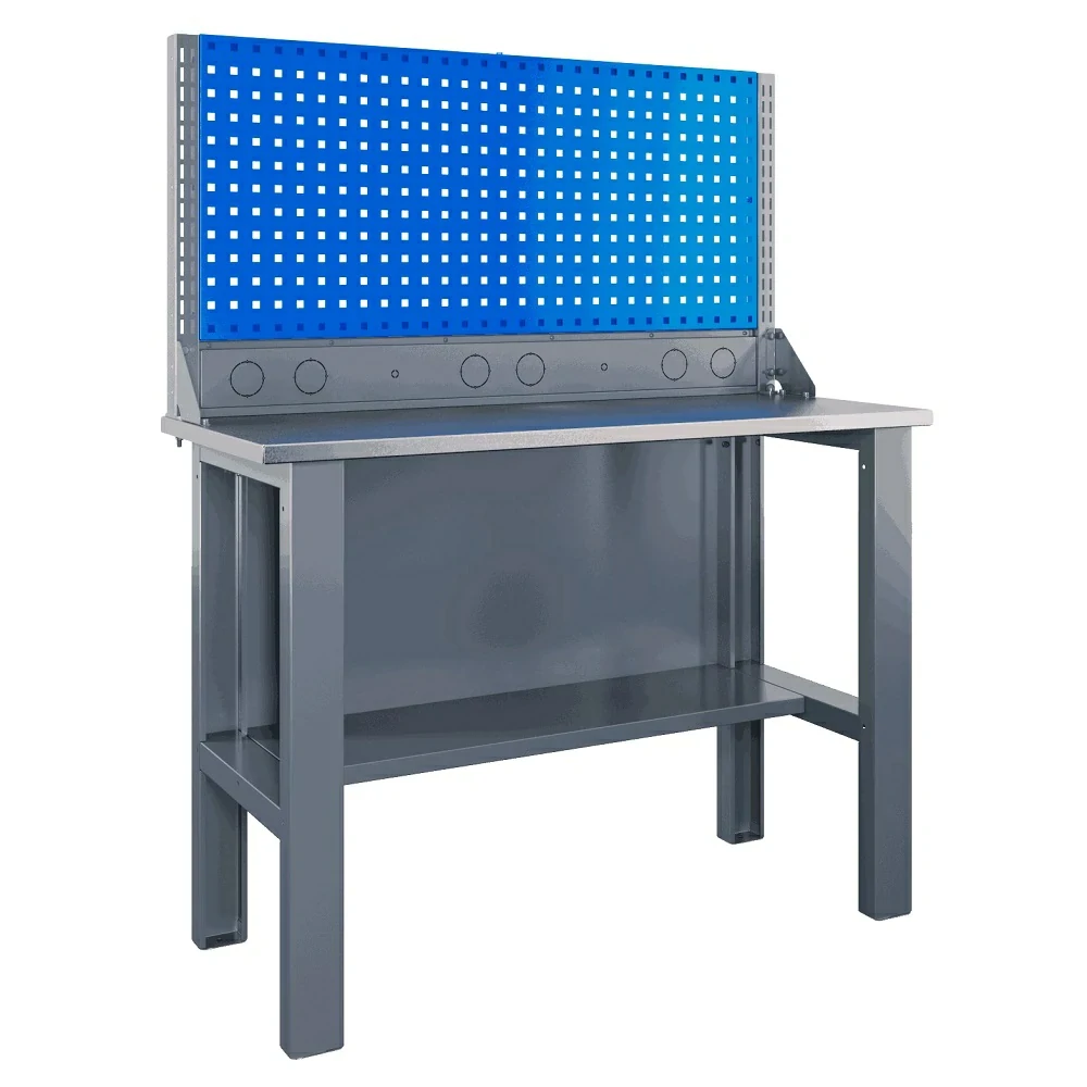 Рабочий слесарный стол SLF 121.11.3-1R с экраном используется для организации рабочих мест в небольших автосервисах, мастерских, цехах, гаражах и т.д. При работе за столом, стоит учитывать, что максимальная нагрузка до 300 кг.