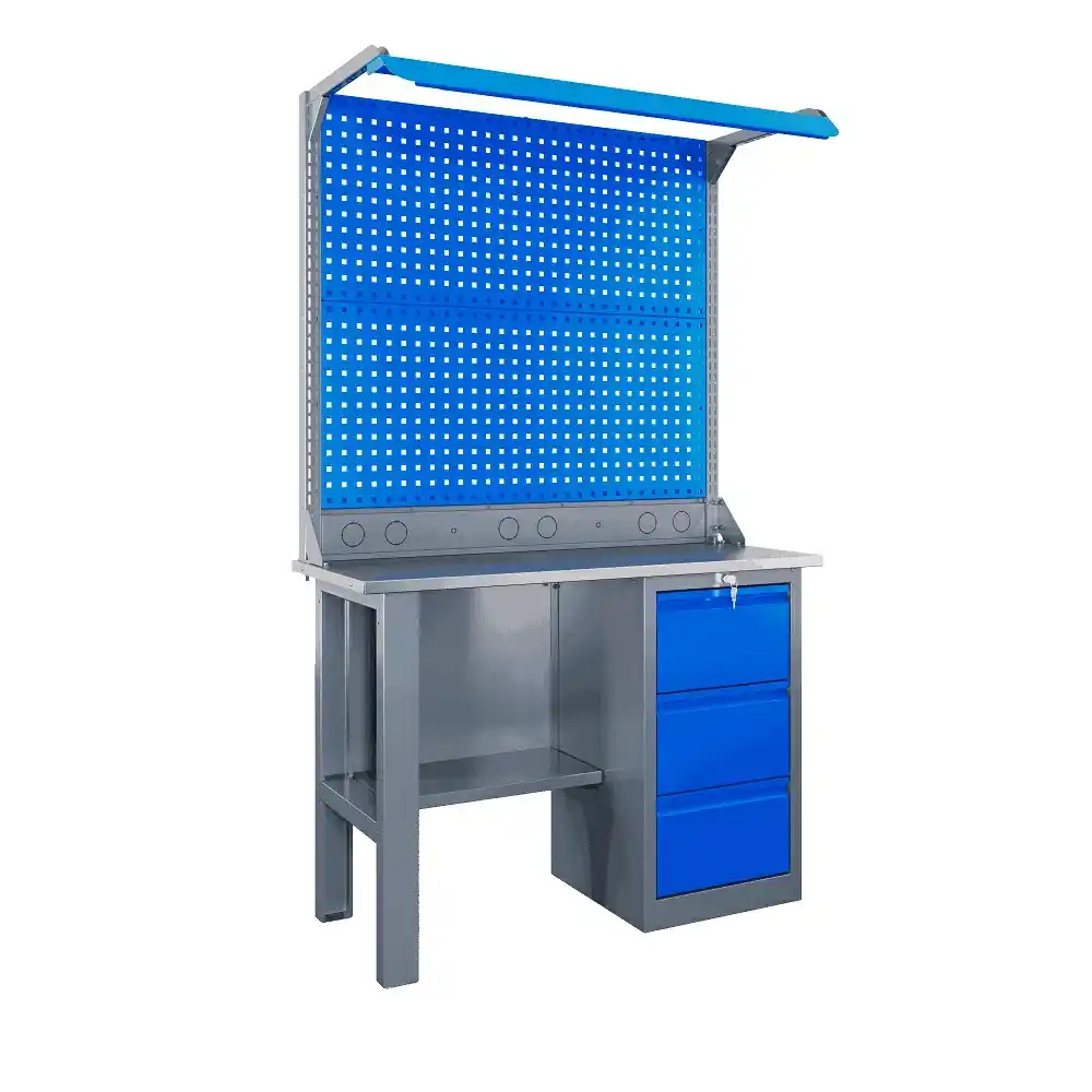- верстак стоит на опорах, для которых применяется листовой металл,