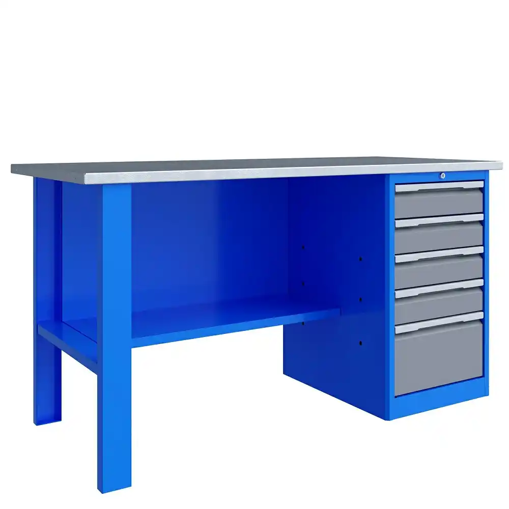 - Тумба верстака - сварная. Ящики в тумбе устанавливаются на шариковых телескопических направляющих полного выдвижения. В тумбе P5 установлено четыре малых и один большой ящика. Внутренние размеры малых ящиков (ВхШхГ), не более: 103 х 397 х 520 мм. Внутренние размеры больших ящиков (ВхШхГ), не более: 222 х 397 х 520 мм. Тумбы с ящиками снабжены общим центральным замком с поворотом ригеля 180º и подпружиненной тягой. В комплекте два ключа.